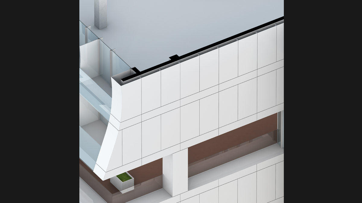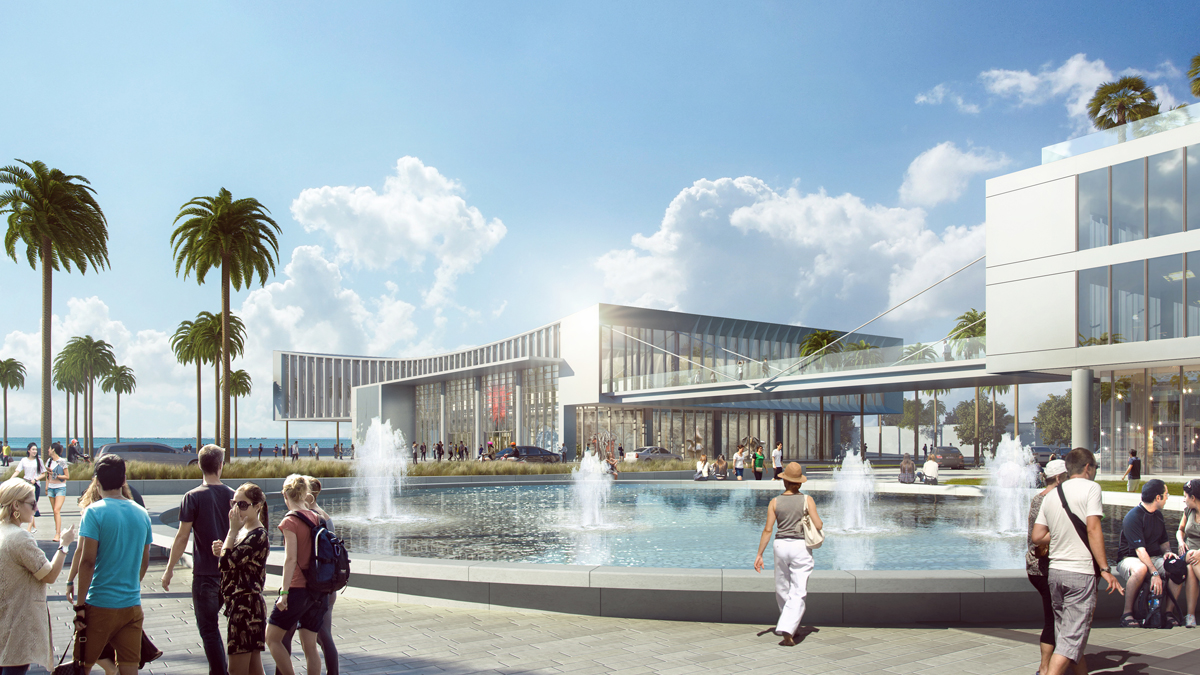 facade of the building complex is designed with a curved surface, like a sail